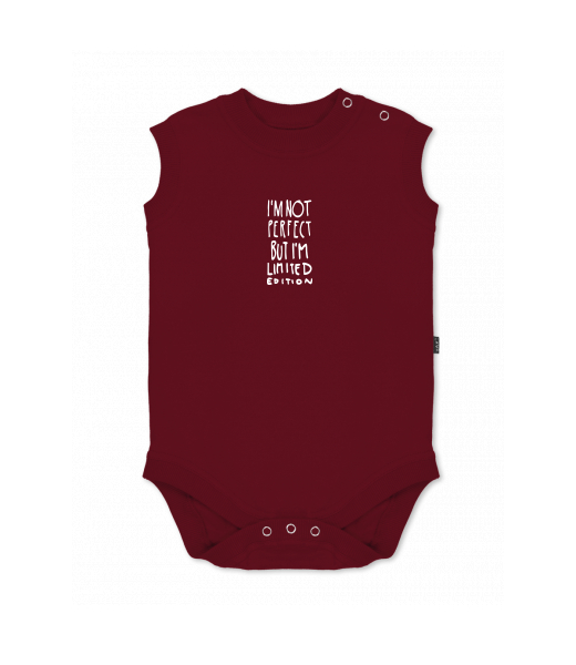 Baby body sleeveless with design for kid with design 1289 IM NOT PERFECT in color DARK RED