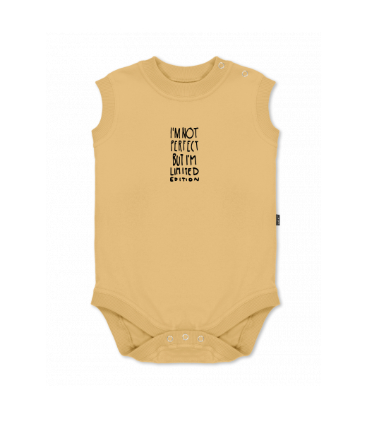 Baby body sleeveless with design for kid with design 1289 IM NOT PERFECT in color MUSTARD