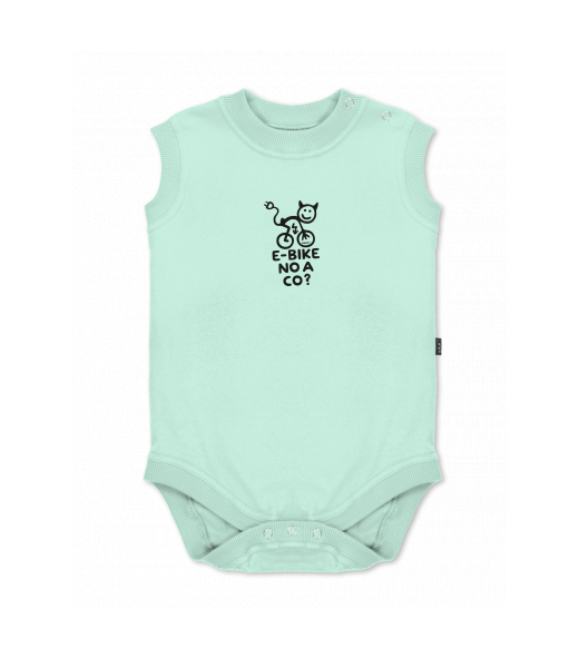 Baby body sleeveless with design for kid with design 1291 E-BIKE NO A CO? in color MINT