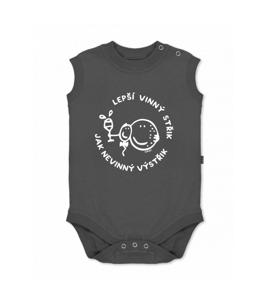 Baby body sleeveless with design for kid with design 1296 LEPŠÍ VINNÝ STŘIK JAK NEVINÝ VÝSTŘIK in color GRAFIT
