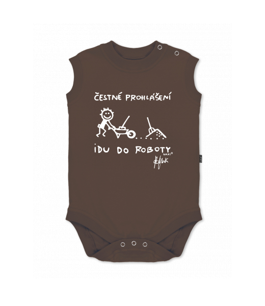Baby body sleeveless with design for kid with design 1303 ČESTNÉ PROHLÁŠENÍ IDU DO ROBOTY in color CHESTNUT