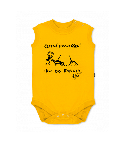 Baby body sleeveless with design for kid with design 1303 ČESTNÉ PROHLÁŠENÍ IDU DO ROBOTY in color GOLDEN CREAM