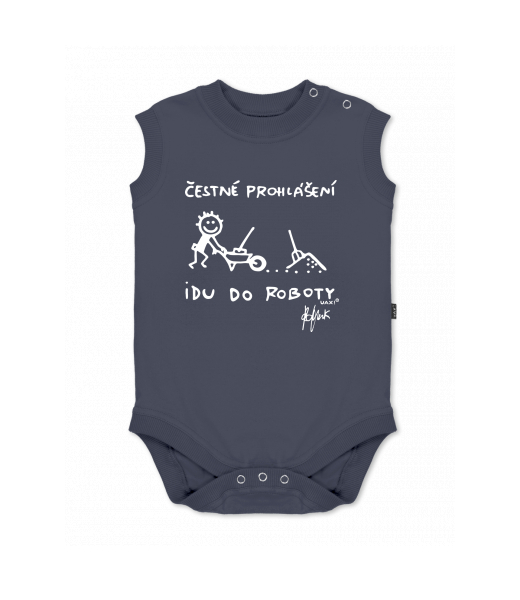 Baby body sleeveless with design for kid with design 1303 ČESTNÉ PROHLÁŠENÍ IDU DO ROBOTY in color GRAY INK