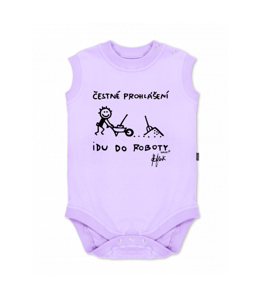 Baby body sleeveless with design for kid with design 1303 ČESTNÉ PROHLÁŠENÍ IDU DO ROBOTY in color LAVENDER