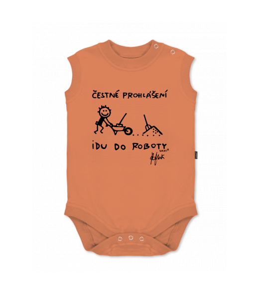 Baby body sleeveless with design for kid with design 1303 ČESTNÉ PROHLÁŠENÍ IDU DO ROBOTY in color MANDARIAN ORANGE