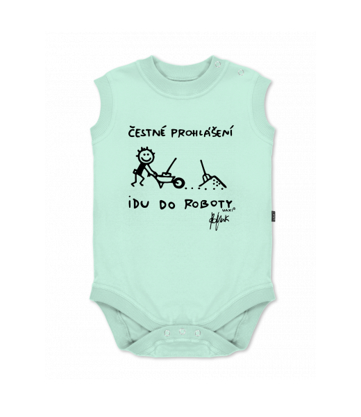 Baby body sleeveless with design for kid with design 1303 ČESTNÉ PROHLÁŠENÍ IDU DO ROBOTY in color MINT