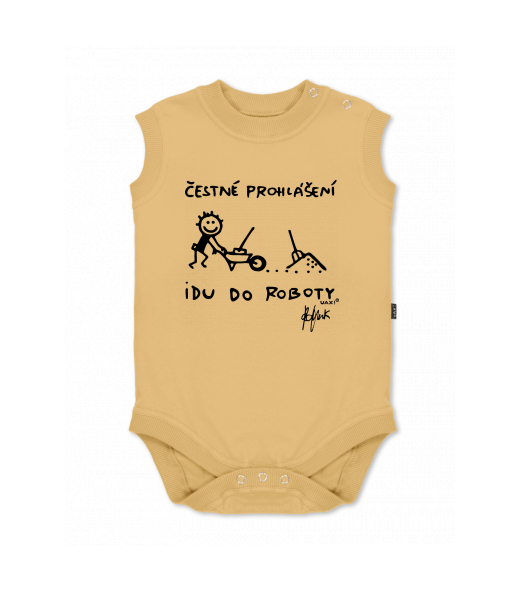 Baby body sleeveless with design for kid with design 1303 ČESTNÉ PROHLÁŠENÍ IDU DO ROBOTY in color MUSTARD