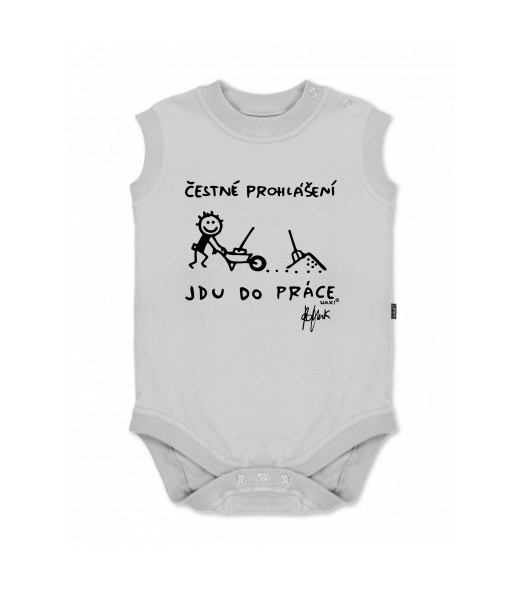 Baby body sleeveless with design for kid with design 1304 ČESTNÉ PROHLÁŠENÍ JDU DO PRÁCE in color CEMENT
