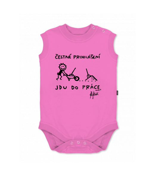 Baby body sleeveless with design for kid with design 1304 ČESTNÉ PROHLÁŠENÍ JDU DO PRÁCE in color CLASSIC PINK