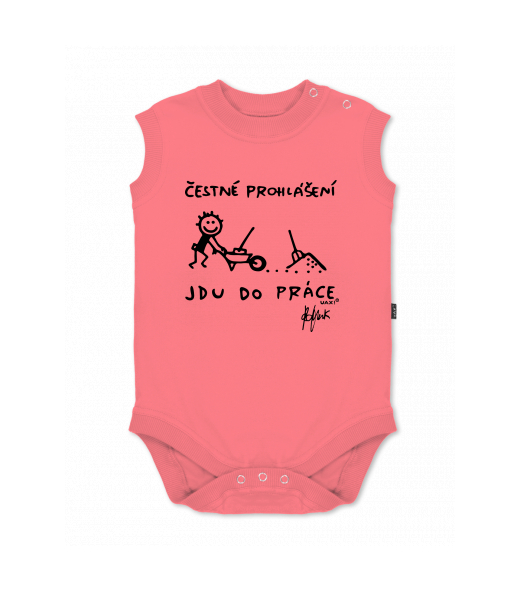 Baby body sleeveless with design for kid with design 1304 ČESTNÉ PROHLÁŠENÍ JDU DO PRÁCE in color LOSOSOVA