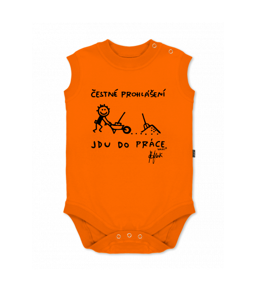 Baby body sleeveless with design for kid with design 1304 ČESTNÉ PROHLÁŠENÍ JDU DO PRÁCE in color SIGNAL ORANGE