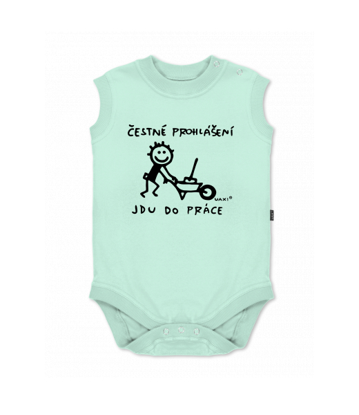 Baby body sleeveless with design for kid with design 1305 ČESTNÉ PROHLÁŠENÍ JDU DO PRÁCE 2 in color MINT