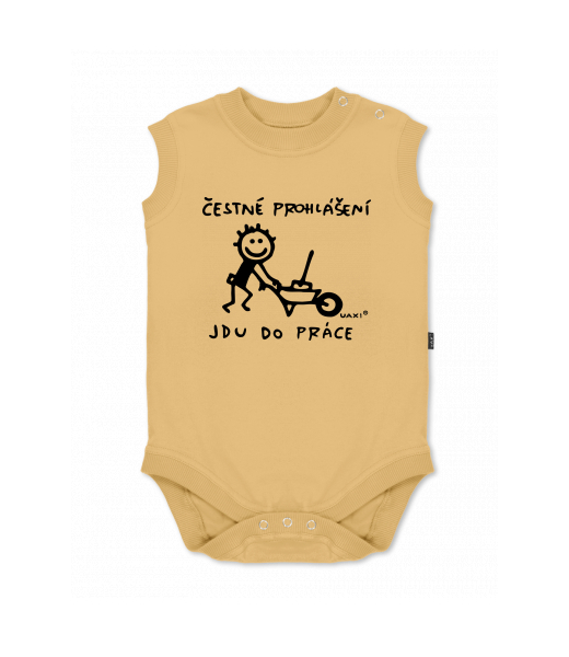 Baby body sleeveless with design for kid with design 1305 ČESTNÉ PROHLÁŠENÍ JDU DO PRÁCE 2 in color MUSTARD