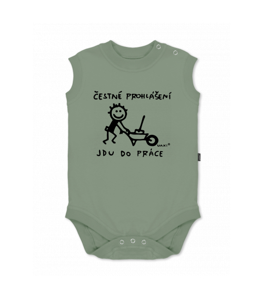 Baby body sleeveless with design for kid with design 1305 ČESTNÉ PROHLÁŠENÍ JDU DO PRÁCE 2 in color OLIVA
