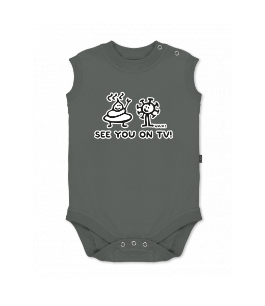 Baby body sleeveless with design for kid with design 1306 SEE YOU ON TV in color DARK GRAY