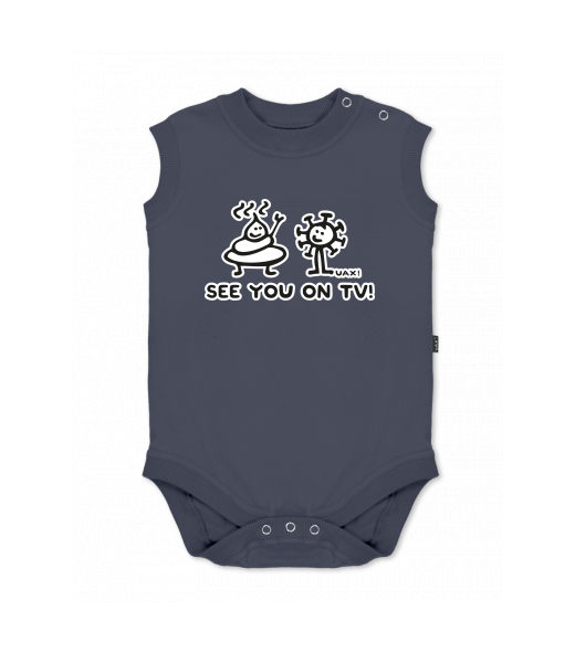 We make sustainable UAX clothing! - hand sewn in the Czech Republic uaxKids uaxAll productsBaby bodyBABY BODY SLEEVELESSdesign 1306 - SEE YOU ON TVGRAY INK