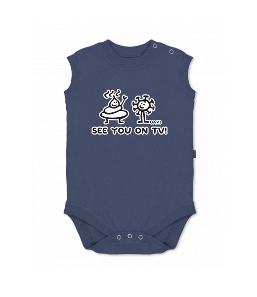 Baby body sleeveless with design for kid with design 1306 SEE YOU ON TV in color JEANS