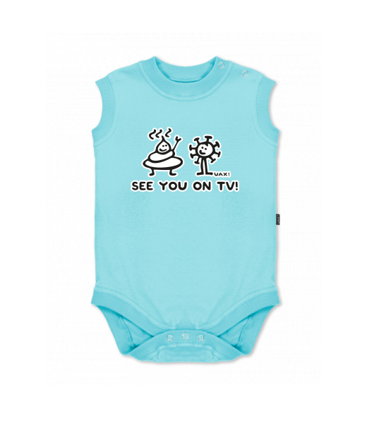 We make sustainable UAX clothing! - hand sewn in the Czech Republic uaxKids uaxAll productsBaby bodyBABY BODY SLEEVELESSdesign 1306 - SEE YOU ON TVPASTEL BLUE