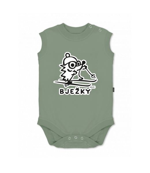 Baby body sleeveless with design for kid with design 1308 BJEŽKY in color OLIVA