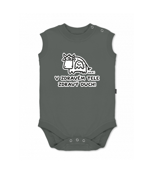 We make sustainable UAX clothing! - hand sewn in the Czech Republic uaxKids uaxAll productsBaby bodyBABY BODY SLEEVELESSdesign 1309 - V ZDRAVÉM TELE ZDRAVÝ DUCHDARK GRAY