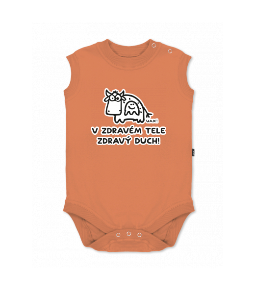 Baby body sleeveless with design for kid with design 1309 V ZDRAVÉM TELE ZDRAVÝ DUCH in color MANDARIAN ORANGE