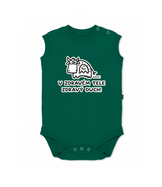 Baby body sleeveless with design for kid with design 1309 V ZDRAVÉM TELE ZDRAVÝ DUCH in color UNIVERSITY GREEN