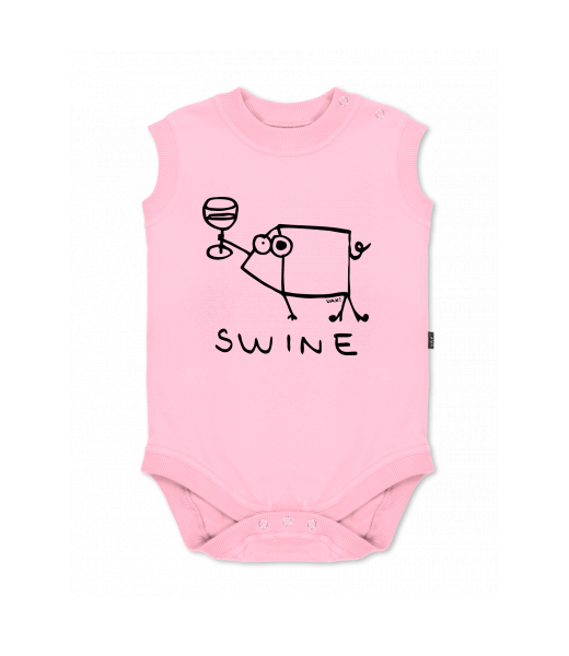 Baby body sleeveless with design for kid with design 1323 SWINE in color BABY PINK