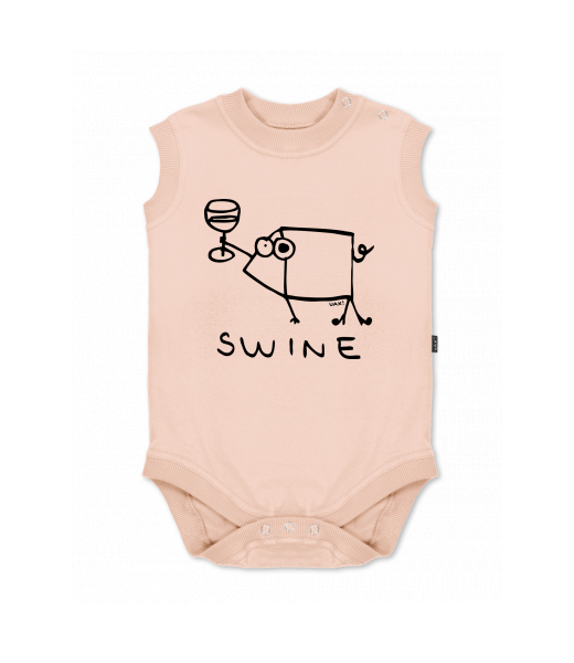 Baby body sleeveless with design for kid with design 1323 SWINE in color CAPPUCINO