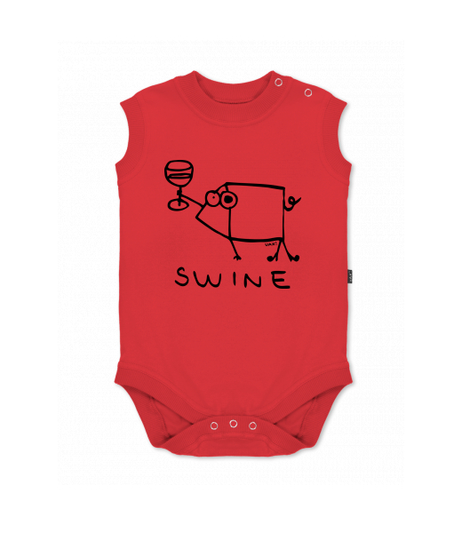 Baby body sleeveless with design for kid with design 1323 SWINE in color RED