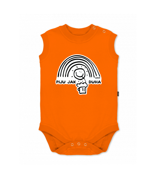We make sustainable UAX clothing! - hand sewn in the Czech Republic uaxKids uaxAll productsBaby bodyBABY BODY SLEEVELESSdesign 1324 - PIJU JAK DUHASIGNAL ORANGE