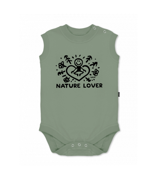 Baby body sleeveless with design for kid with design 1325 NATURE LOVER in color OLIVA