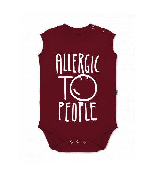 Baby body sleeveless with design for kid with design 1329 ALLERGIC TO PEOPLE in color DARK RED