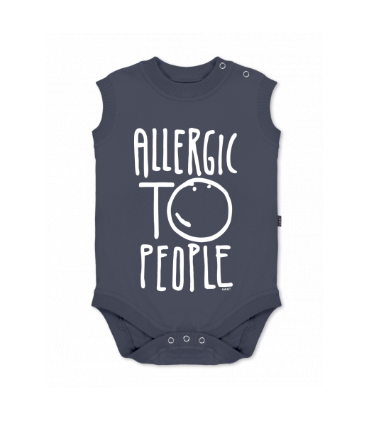 Baby body sleeveless with design for kid with design 1329 ALLERGIC TO PEOPLE in color GRAY INK