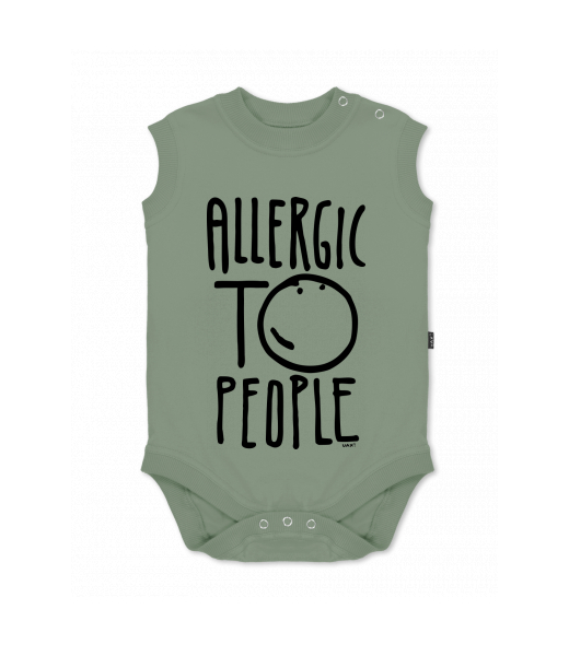 Baby body sleeveless with design for kid with design 1329 ALLERGIC TO PEOPLE in color OLIVA