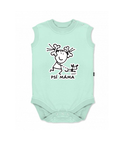 Baby body sleeveless with design for kid with design 1330 PSÍ MÁMA in color MINT