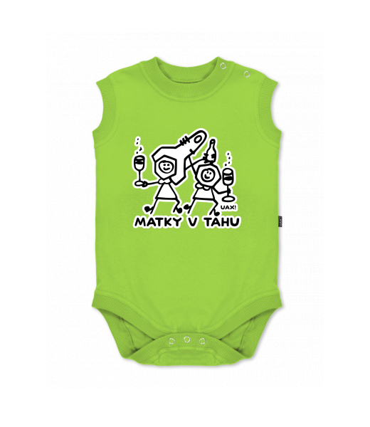 We make sustainable UAX clothing! - hand sewn in the Czech Republic uaxKids uaxAll productsBaby bodyBABY BODY SLEEVELESSdesign 1331 - MATKY V TAHUPARROT GREEN
