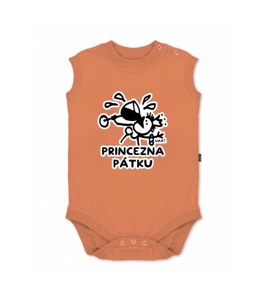 Baby body sleeveless with design for kid with design 1349 PRINCEZNA PÁTKU in color MANDARIAN ORANGE