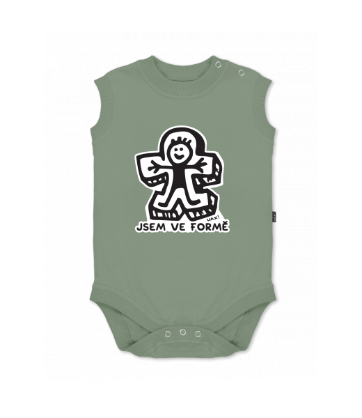 Baby body sleeveless with design for kid with design 1351 JSEM VE FORMĚ in color OLIVA