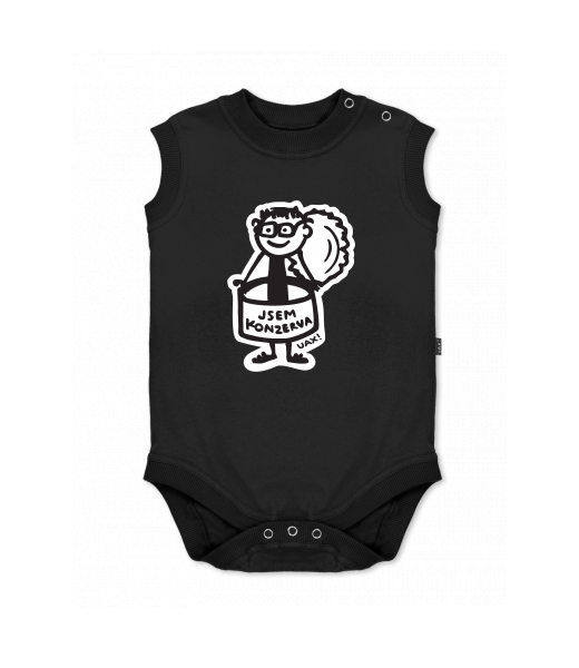 We make sustainable UAX clothing! - hand sewn in the Czech Republic uaxKids uaxAll productsBaby bodyBABY BODY SLEEVELESSdesign 1352 - JSEM KONZERVA MENBLACK