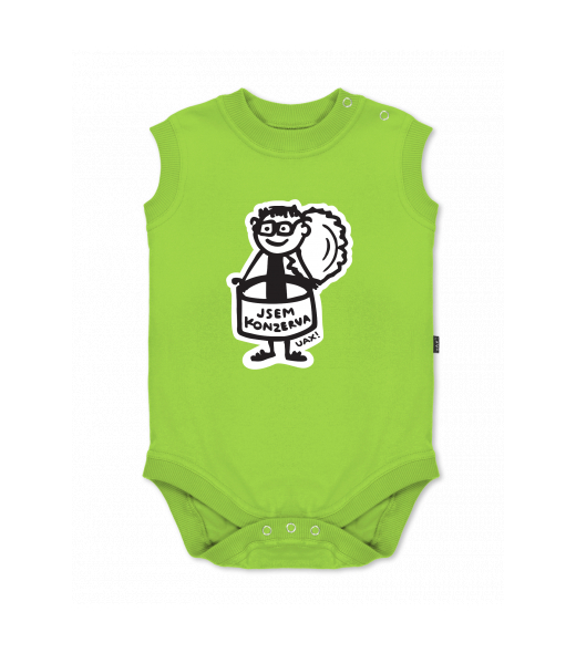 We make sustainable UAX clothing! - hand sewn in the Czech Republic uaxKids uaxAll productsBaby bodyBABY BODY SLEEVELESSdesign 1352 - JSEM KONZERVA MENPARROT GREEN