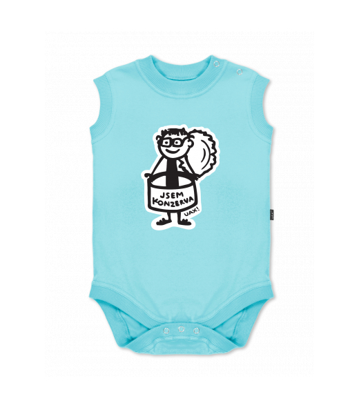 Baby body sleeveless with design for kid with design 1352 JSEM KONZERVA MEN in color PASTEL BLUE