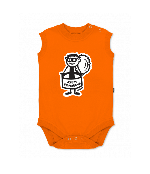 We make sustainable UAX clothing! - hand sewn in the Czech Republic uaxKids uaxAll productsBaby bodyBABY BODY SLEEVELESSdesign 1352 - JSEM KONZERVA MENSIGNAL ORANGE