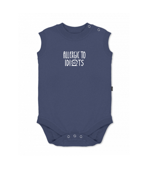 Baby body sleeveless with design for kid with design 1354 ALLERGIC TO IDIOTS in color JEANS