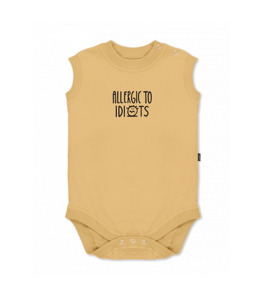 Baby body sleeveless with design for kid with design 1354 ALLERGIC TO IDIOTS in color MUSTARD