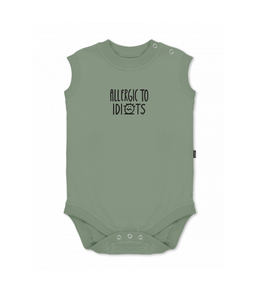 Baby body sleeveless with design for kid with design 1354 ALLERGIC TO IDIOTS in color OLIVA