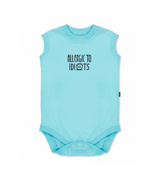 Baby body sleeveless with design for kid with design 1354 ALLERGIC TO IDIOTS in color PASTEL BLUE