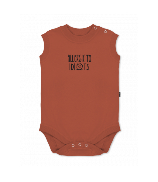 Baby body sleeveless with design for kid with design 1354 ALLERGIC TO IDIOTS in color TERRA