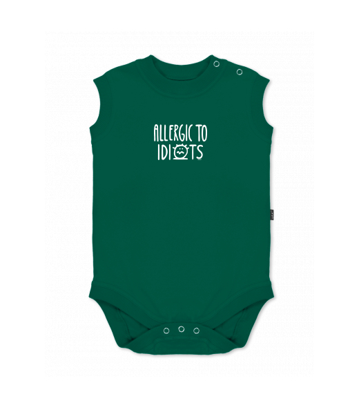 Baby body sleeveless with design for kid with design 1354 ALLERGIC TO IDIOTS in color UNIVERSITY GREEN