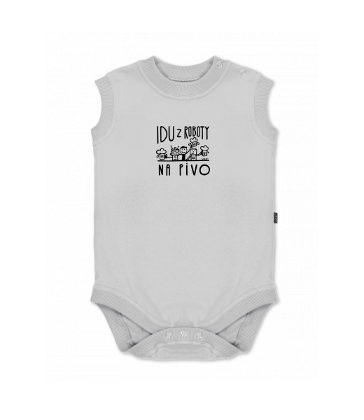 Baby body sleeveless with design for kid with design 1369 IDU Z ROBOTY NA PIVO in color CEMENT