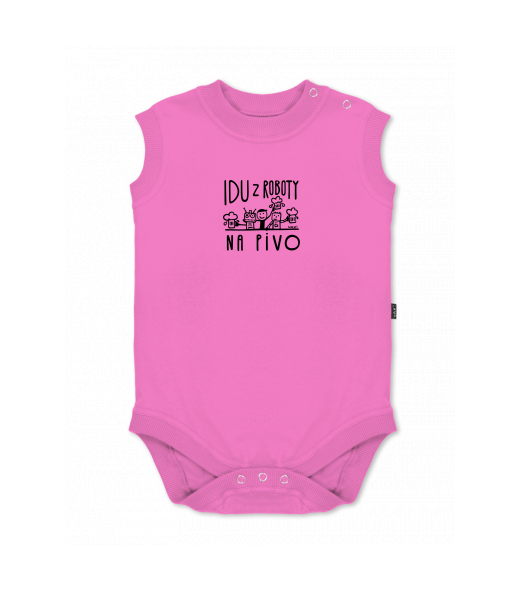 Baby body sleeveless with design for kid with design 1369 IDU Z ROBOTY NA PIVO in color CLASSIC PINK